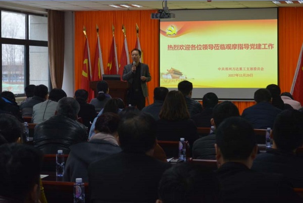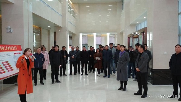 2017 年11 月29 日上午,實(shí)驗(yàn)區(qū)黨工委組織部組織區(qū)機(jī)關(guān)黨工委、各辦事處(IT 社區(qū))黨工委、興港公司黨委和港區(qū)7家非公企業(yè)黨建負(fù)責(zé)同志62 人蒞臨萬(wàn)達(dá)重工黨支部觀摩指導(dǎo)黨建工作。萬(wàn)達(dá)重工黨支部副書(shū)記于江山、紀(jì)律委員薛如勛、宣傳委員張夢(mèng)珠等人隨行陪同并講解企業(yè)運(yùn)營(yíng)、企業(yè)文化及黨建工作情況。