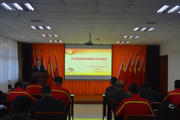 2018年4月18日下午,鄭州萬達(dá)重工股份有限公司黨總支在集團(tuán)綜合樓二樓黨建基地開展了2018年度4月份“黨員集中活動(dòng)日”活動(dòng)。黨總支全體黨員、入黨積極分子、入黨申請(qǐng)人共有40余人參加了此次活動(dòng)。