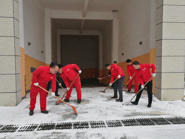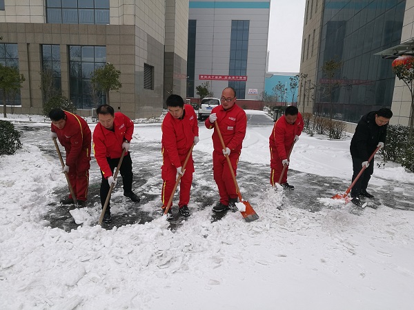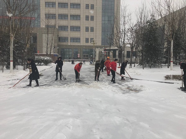 勞動(dòng)現(xiàn)場(chǎng),全體黨員不畏嚴(yán)寒,協(xié)調(diào)配合、齊心協(xié)力,用鐵鍬和掃帚等工具清掃公司廠區(qū)內(nèi)積雪,大家爭(zhēng)先恐后,干勁十足,忙碌的身影構(gòu)成了一道亮麗的風(fēng)景線。經(jīng)過近兩個(gè)小時(shí)的奮戰(zhàn),將廠區(qū)大門前、車庫(kù)前、行政樓前主要道路的積雪清掃干凈,為大家開辟了一條洋溢著溫情的通暢之路。