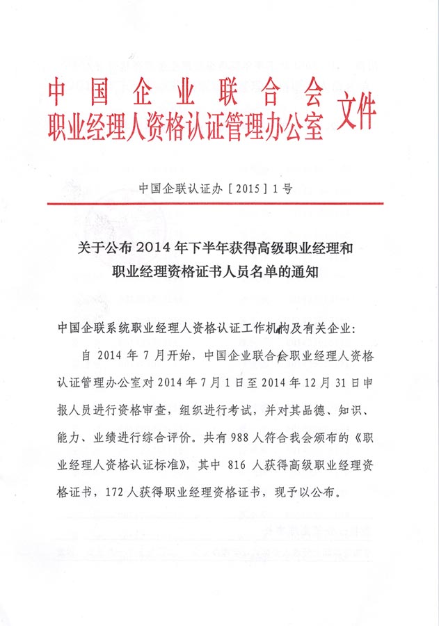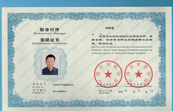 熱烈祝賀我公司劉保國(guó)等6位同志獲得職業(yè)經(jīng)理人資格證書