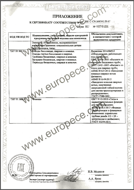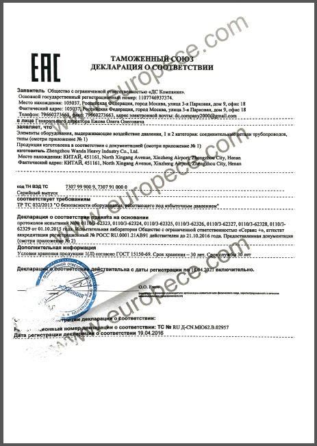 CU-TR認證產品覆蓋萬達重工生產的彎管、法蘭等各類型產品,認證證書的取得是俄白哈對萬達重工產品資料、安全標識、產品性能的肯定,同時驗證了萬達重工的產品質量又邁上了一個更高的臺階。近年來,我公司積極開拓海外市場,把擴大國際市場作為重要的發(fā)展戰(zhàn)略,此次CU-TR認證證書的取得,為我司進一步開拓歐洲市場提供了強有力的保證。