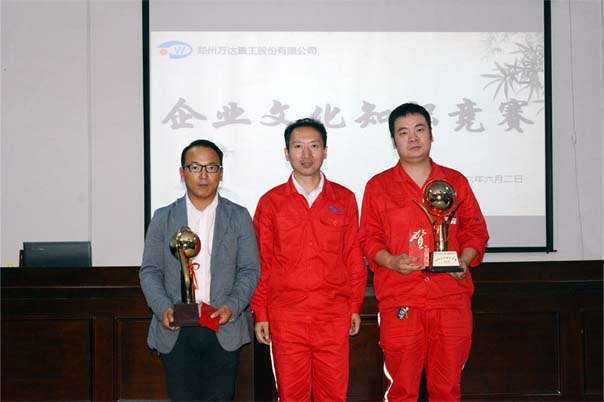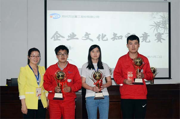 本次企業(yè)文化知識競賽共持續(xù)三個半小時,由控股公司友聯(lián)智能、子公司萬達科技、萬達邁克及總公司萬達重工的14個部門共同組成的15支代表隊伍共66人參加了比賽。比賽評委由公司董事長、書記何清、工會主席于江山、總工袁希海、人力資源部經(jīng)理趙書麗擔任,過程精彩、激烈,觀眾熱情高漲,各選手互相配合,團結(jié)協(xié)作。最終在“公開,公正,公平”的原則下,經(jīng)過初露鋒芒、心有靈犀、當機立斷、精誠合作四輪的角逐產(chǎn)生優(yōu)勝獎團隊:行政管理部代表隊榮獲一等獎,萬達邁科、生產(chǎn)管理部一隊獲得二等獎,物流服務(wù)中心、知識體系二期聯(lián)合部及質(zhì)量管理部榮獲三等獎。