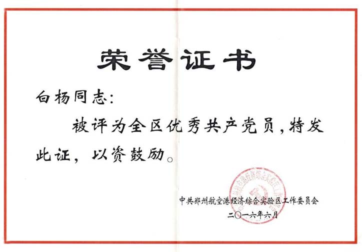 熱烈祝賀公司黨支部組織委員白楊獲得“鄭州市航空港經(jīng)濟(jì)綜合實(shí)驗(yàn)區(qū)優(yōu)秀共產(chǎn)黨員”榮譽(yù)稱