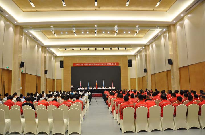 7月19日上午鄭州萬達重工股份有限公司2016上半年工作運營總結大會在航空港區(qū)中部國際電子商務產業(yè)園隆重圓滿召開,參加會議并在主席臺就座的的領導分別為股份公司董事長、書記何清,股份公司董事、總經理張付峰,股份公司監(jiān)事會主席、工會主席于江山,股份公司董事、副總經理王立軍,股份公司監(jiān)事、總工程師袁希海,股份公司董秘、副總經理馬曉延、股份公司董事、財務總監(jiān)劉保國,鄭州友聯(lián)智能裝備有限公司總經理孫夫彥,鄭州萬達科技發(fā)展有限公司總經理劉國曉、鄭州萬達邁科國際發(fā)展有限公司總經理張明行。