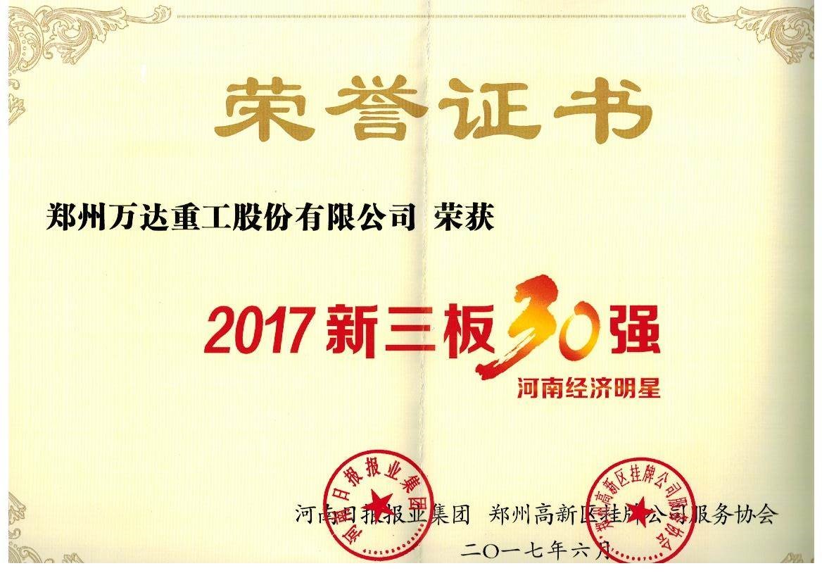 熱烈祝賀鄭州萬達(dá)重工股份有限公司榮獲河南新三板“TOP30強(qiáng)”