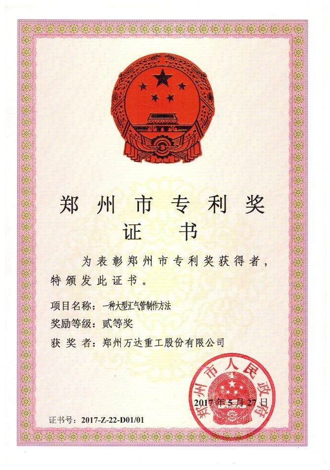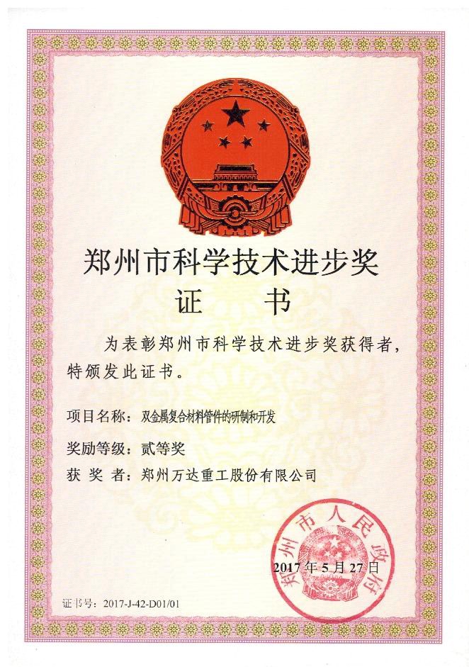 鄭州萬(wàn)達(dá)重工股份有限公司榮獲2017年鄭州市科學(xué)技術(shù)進(jìn)步獎(jiǎng)和專利獎(jiǎng)