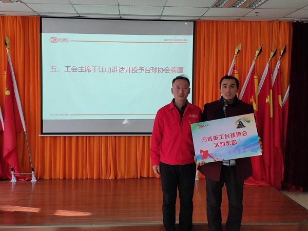 最后工會(huì)主席于江山做總結(jié)講話并授予臺(tái)球協(xié)會(huì)會(huì)長“活動(dòng)家園”牌匾,于主席分別對(duì)“協(xié)會(huì)”和“工會(huì)”的區(qū)別,為什么成立協(xié)會(huì)?為什么協(xié)會(huì)是由工會(huì)領(lǐng)導(dǎo)?為什么協(xié)會(huì)能得到員工的認(rèn)可、領(lǐng)導(dǎo)的重視等方面進(jìn)行闡述,并指出,臺(tái)球協(xié)會(huì)的成立開創(chuàng)了萬達(dá)重工企業(yè)文化方面協(xié)會(huì)成立的先河,同時(shí)萬達(dá)重工臺(tái)球協(xié)會(huì)也是航空港區(qū)眾多企業(yè)中成立的第一家臺(tái)球協(xié)會(huì),其協(xié)會(huì)的成立填補(bǔ)了港區(qū)企業(yè)臺(tái)球協(xié)會(huì)方面的空白。于主席最后強(qiáng)調(diào),協(xié)會(huì)成立后會(huì)有更多的豐富活動(dòng),會(huì)有更多的展示機(jī)會(huì),臺(tái)球家園會(huì)越辦越好!會(huì)議結(jié)束后,公司領(lǐng)導(dǎo)與臺(tái)球協(xié)會(huì)全體會(huì)員在綜合辦公樓前合影留念。