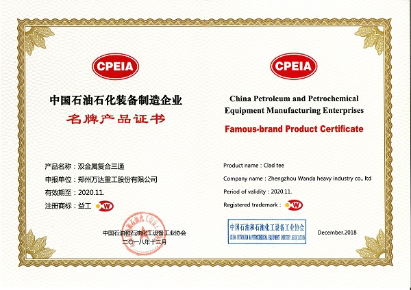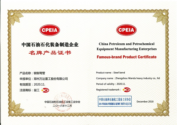 鄭州萬達(dá)重工股份有限公司榮獲“中國石油石化裝備制造企業(yè)名牌產(chǎn)品證書”