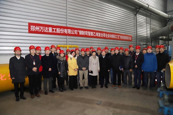 鋼制彎管聚乙烯復(fù)合帶全自動(dòng)纏繞工藝現(xiàn)場(chǎng)觀摩研討會(huì)在鄭州萬達(dá)重工股份有限公司成功召開
