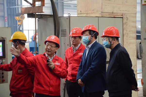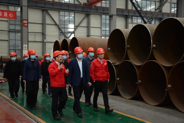 曾部長一行先后深入檢驗中心、堆焊智能制造車間、物流倉儲車間、彎制車間、機加工等車間進行了參觀。在檢驗中心,何董重點對公司省級技術研究中心的建設運行、CNAS實驗室建設、知識產(chǎn)權獲得等情況等進了詳細介紹。調研組一行對公司國家級技術中心創(chuàng)建規(guī)劃表示肯定。