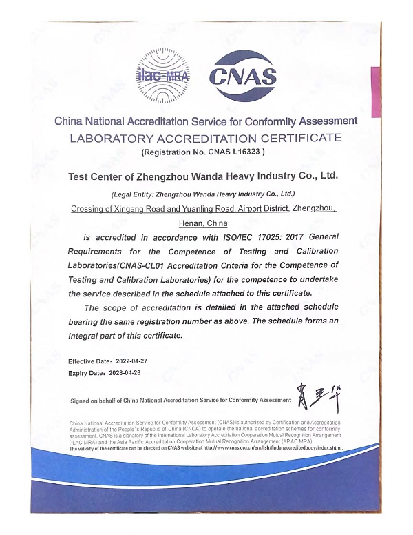 熱烈祝賀鄭州萬達(dá)重工股份有限公司順利通過CNAS實(shí)驗(yàn)室認(rèn)定