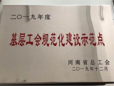 鄭州萬達(dá)重工股份有限公司工會(huì)榮獲河南省“2019年度基層工會(huì)規(guī)范化建設(shè)示范點(diǎn)”稱號(hào)