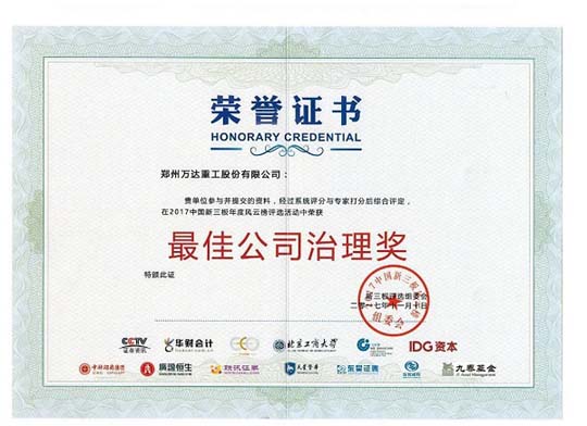 熱烈祝賀鄭州萬達重工股份有限公司榮獲 “2017年中國新三板年度風(fēng)云榜”最佳公司治理獎