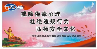 2017/07/03   647 鄭州萬達重工股份公司戒除僥幸心理、杜絕違規(guī)行為、弘揚安全文化第四屆安全月活動順利隆重啟動 為進一步加大安全生產(chǎn)宣傳力度,強化紅線意識,推動落實企業(yè)安全主題責(zé)任,弘揚安全文化,強化安全理念,建設(shè)幸福萬達事業(yè),公司特于2017年7月1日7月31日舉辦以戒除僥幸心理、杜絕違規(guī)行為、弘揚安全文化為主題的安全月活動。 該活動受到...