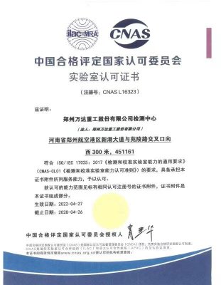 熱烈祝賀鄭州萬達重工股份有限公司順利通過CNAS實驗室認(rèn)定