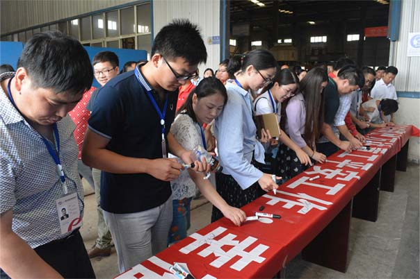 會(huì)后,公司領(lǐng)導(dǎo)及全體員工在“2016鄭州萬(wàn)達(dá)重工平安工作•幸福生活”安全條幅上簽字留念。